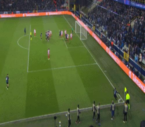 第51分鐘,奧涅迪卡角球亂戰破門,布魯日1-2扳回一城!