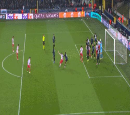 第60分鐘,馬馬杜-賈孔強突傳中,特雷索爾迪搶點破門,布魯日連扳兩城2-2!
