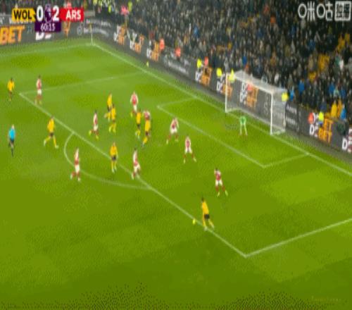 上半場第5分鐘,賴斯傳中幫助薩卡破門,后者也打破15場進球荒,阿森納暫1比0狼隊;