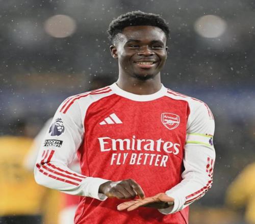 薩卡進(jìn)球后的慶祝動作暗示他已經(jīng)和阿森納簽字續(xù)約。