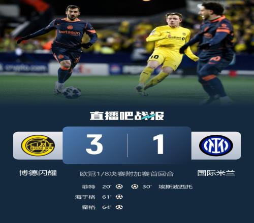 歐冠1/8決賽附加賽首回合,國米客場1-3不敵博德閃耀,埃斯波西托進球。