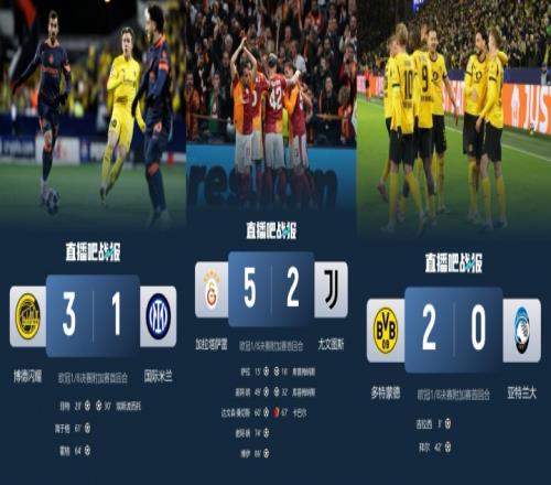 歐冠淘汰賽附加賽首回合,國米1-3博德閃耀,尤文2-5慘敗給加拉塔薩雷,亞特蘭大0-2不敵多特蒙德。