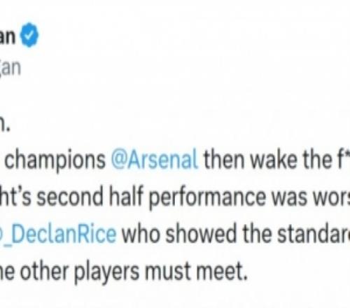 摩根社媒:阿森納若想奪冠就趕緊醒醒,球員必須都有賴斯的拼勁