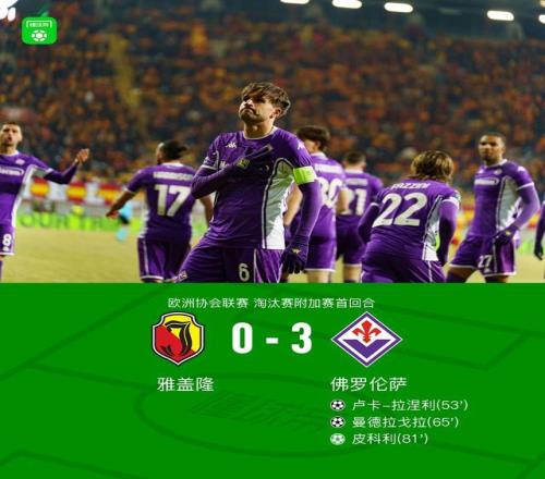 北京時間2月20日歐洲協會聯賽 淘汰賽附加賽首回合,雅蓋隆對陣佛羅倫薩。下半場盧卡-拉涅利破門首開紀錄,隨后曼德拉戈拉任意球破門,皮科利造點親自主罰打進再下一城。最終比分雅蓋隆 0-3 佛羅倫薩。