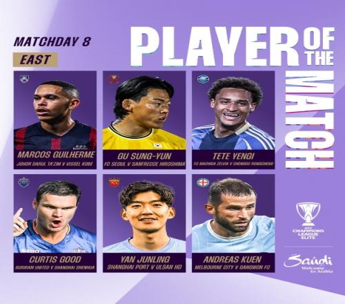 附亞冠精英聯賽第8輪東亞區各場次最佳: