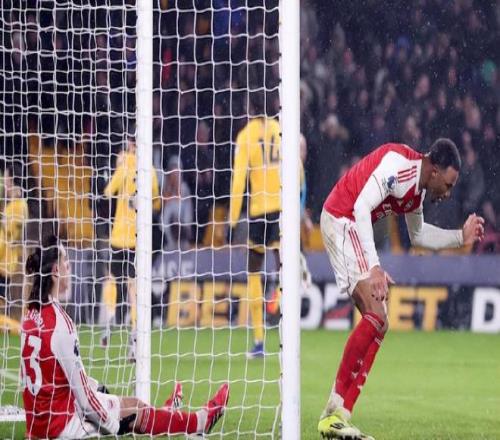 此役賽前被各方認為是穩贏局,最終被絕平。這場比賽槍手憑借薩卡的破荒進球和因卡皮耶的處子球一度取得2-0領先,卻在半場過后陷入被動,被狼隊憑借布埃諾的世界波和埃多齊的補時絕平逼至2-2平局。此役之前,阿森納少賽一場領先積分榜次席的曼城4分,手握爭冠主動權。阿爾特塔在核心厄德高缺陣的情況下做出戰術調整,將陣型改為4-2-3-1,把此前深陷進球荒的薩卡推至前腰位置,這一變動迅速收到成效,為槍手打開了勝利之門。