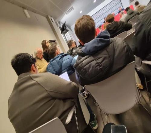 我不知道意甲是不是不允許記者拍視頻,還是記者們并不需要拍攝短視頻這種內(nèi)容。但是,我必須入鄉(xiāng)隨俗,選擇不拍攝視頻素材,僅匆匆拍下了法布雷加斯出席發(fā)布會的一張照片留作紀(jì)念。