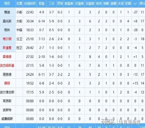 凱爾特人隊這邊,球員表現(xiàn)參差不齊。追夢格林的表現(xiàn)著實令人大跌眼鏡,他的運(yùn)動戰(zhàn)7次出手全部偏出,并且沒有獲得任何罰球機(jī)會,得分欄上零分,僅僅收獲了2個籃板和3次助攻。更糟糕的是,他的正負(fù)值低至 -28,位列全場最低。交易截止日已然過去,格林卻依舊狀態(tài)低迷,不禁讓人心生疑問:是他沒有全身心投入比賽,還是年滿35歲的他,競技水平出現(xiàn)了斷崖式下滑?