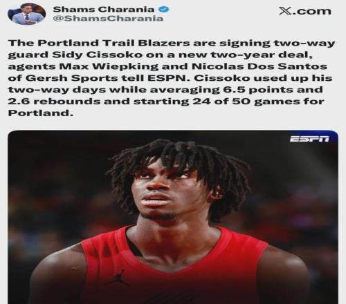 爆料王Shams:開拓者與雙向合同后衛(wèi)西迪-西索科,重新簽約一份兩年合同。