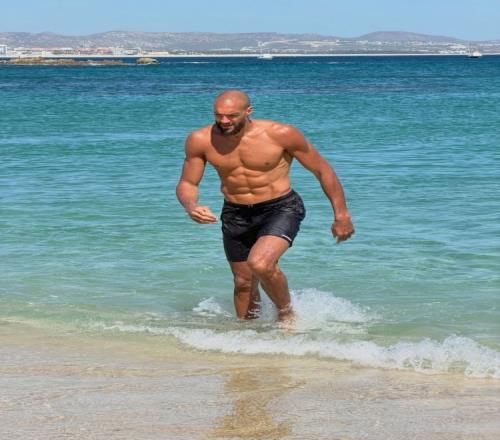 八塊腹肌!戈貝爾海邊度假放松不忘保持訓練