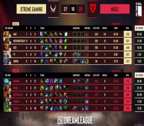 關鍵的30分鐘團戰NTS獸王吼了個林肯,同時XG沒人找到Seleri骨法被他輸血吸血作用拉滿!殘局yamich小強雙戳+殼配合隊友完成收割,這波MOUZ打出2換6團滅XG直接扭轉的局勢,劣勢局面下馬爾斯+海民沒輸出的弱點暴露,MOUZ高地團強殺XG雙大哥,拆掉三路+基地結束比賽!雙方最終各取一分,攜手晉級本次夢聯S28的二階段小組賽!