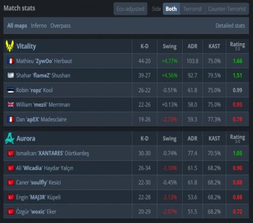 Vitality:mezii、apEX、ropz、flameZ、ZywOo