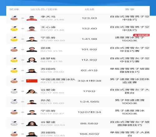 冬奧獎牌榜:中國排名第12,12枚獎牌刷新冬奧境外參賽最好成績!