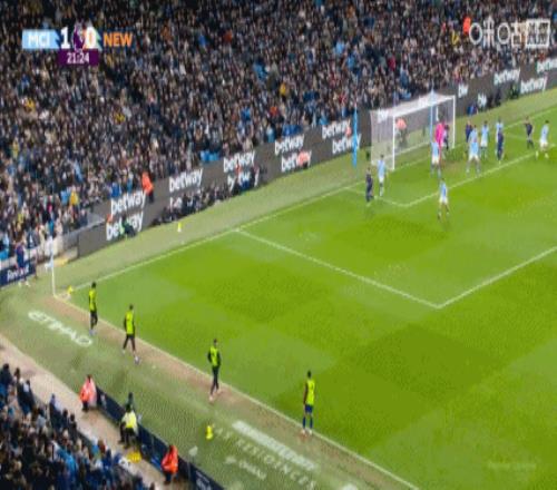 第22分鐘,紐卡開出左路角球至禁區內,雅各布·拉姆塞將球回敲,霍爾禁區外得球后起腳遠射破門,紐卡扳平,1-1!↓