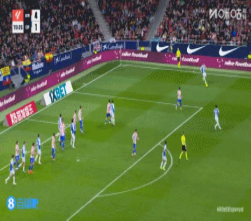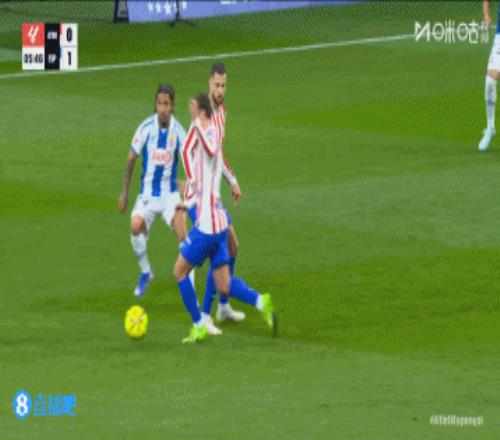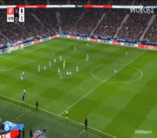 第33分鐘,巴埃納左肋位置起傳中,禁區內格列茲曼頭球后蹭攻門角度太正被沒收↓