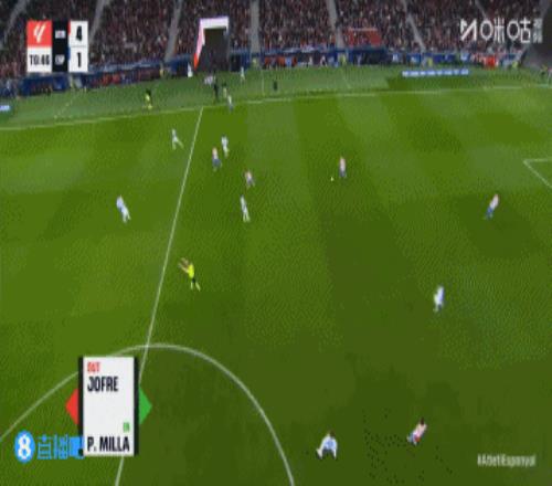 第80分鐘,西班牙人右路進攻橫掃禁區被解圍不遠,弧頂左側埃克斯波西托遠射近角入網!比分改寫為4-2↓