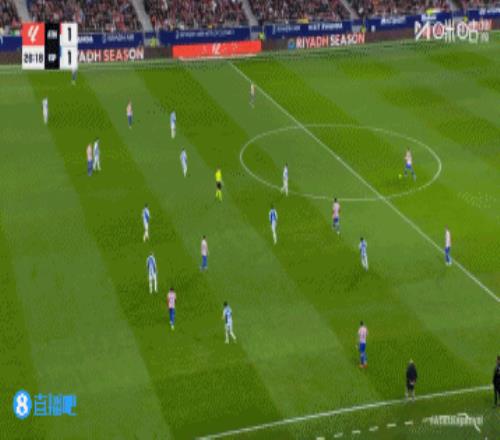 第27分鐘,普比爾后場送出精妙長傳打穿防線,格列茲曼跟進絕佳機會稍稍打偏↓