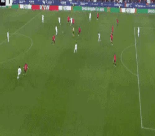比賽開始后,皇馬立刻發(fā)動勇猛攻勢,輪番組織進攻,爭取盡快進球。第21分鐘,皇馬獲得前場任意球,居萊爾開出后,阿森西奧甩頭攻門,盡管球速很快,但是奧薩蘇納門將站位不錯,將球沒收。
