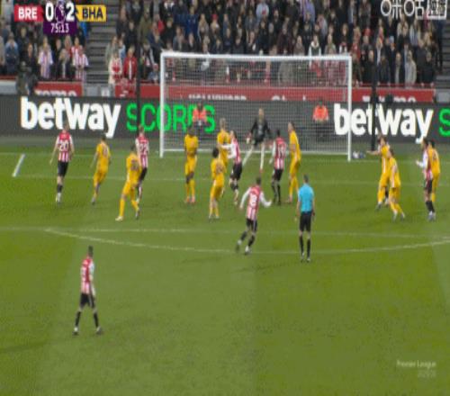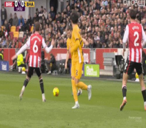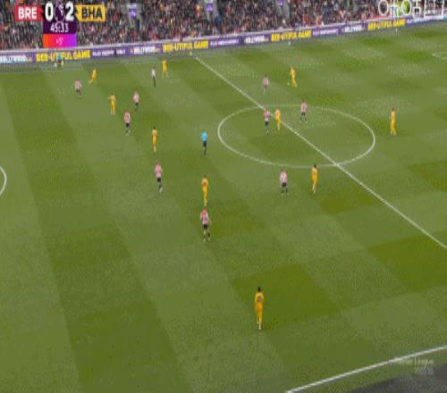 第45分鐘,科林斯解圍低級失誤,維爾貝克笑納大禮破門,布萊頓2-0!
