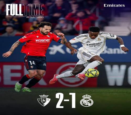 比賽結束,皇家馬德里在客場不敵奧薩蘇納。