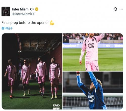 邁阿密國際更新社媒動態,曬出梅西等球員賽前熱身的照片,配文:“開幕戰之前的最后準備。”
