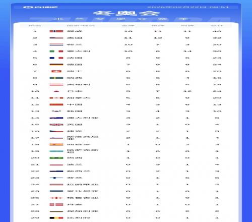 冬奧會最新獎牌榜: