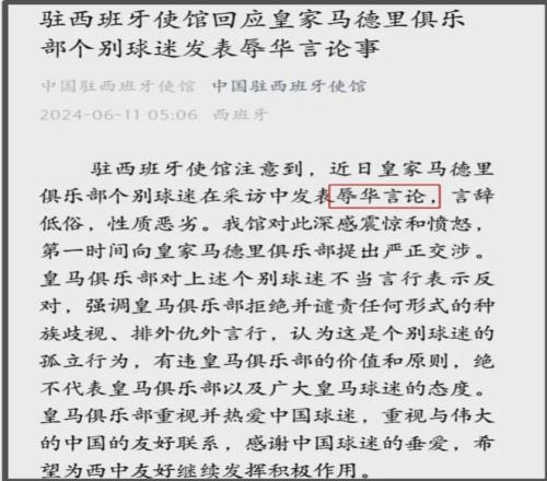 不難預料,皇馬俱樂部一開始也是沉默不回應,幸虧被歧視的體育博主沒有放棄,大使館工作人員也出面幫忙,終于得到了皇馬俱樂部正式回應。