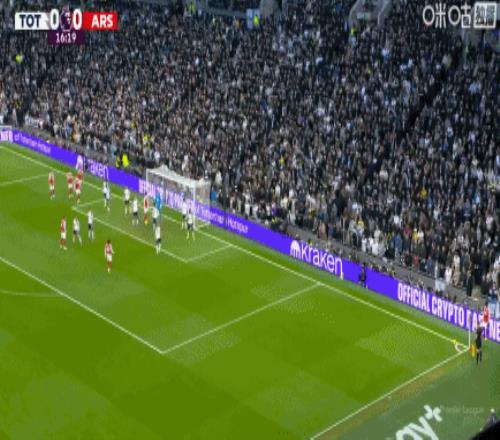 第34分鐘,賴斯帶球失誤被斷,穆阿尼破門!熱刺1-1扳平阿森納!