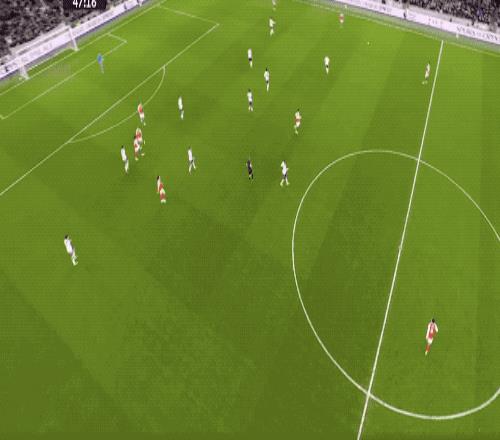 第36分鐘,薩卡形成單刀,維卡里奧出擊,用身體將球擋出。