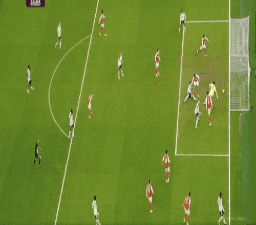 第32分鐘,廷貝爾策動進攻,薩卡過掉薩爾后倒三角傳中,埃澤停球并不舒服,但有足夠的時間抽射破門。