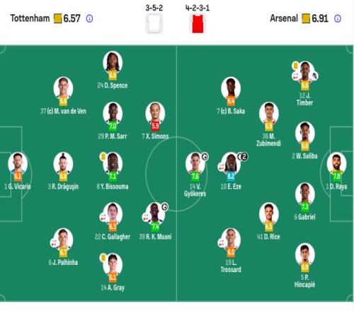 熱刺首發:1-維卡里奧、37-范德芬、24-斯彭斯、3-德勒古欣、6-帕利尼亞(82’11-特爾)、8-比蘇馬、14-阿奇·格雷、29-薩爾、22-加拉格爾(62’19-索蘭克)、7-哈維·西蒙斯、39-穆阿尼(68’9-里沙利松)。