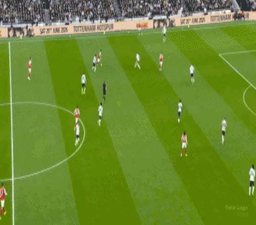 第63分鐘,哲凱賴什背身做球,埃澤送出妙傳,薩卡單刀射門被封堵,球打在帕利尼亞腳上反彈回來,埃澤笑納大禮,輕松抽射得手,上演梅開二度好戲,阿森納再下一城,3-1!本賽季兩次對陣熱刺,埃澤打進(jìn)5球!