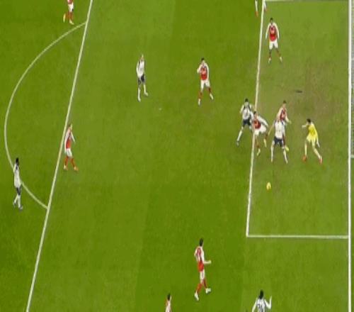 第37分鐘,賴斯送出精準(zhǔn)長傳,薩卡插上單刀低射,維卡里奧出擊將球撲出。