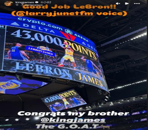 在本場比賽中,詹姆斯常規賽生涯總得分突破43000里程碑,賽后他轉發了個人海報勉勵。