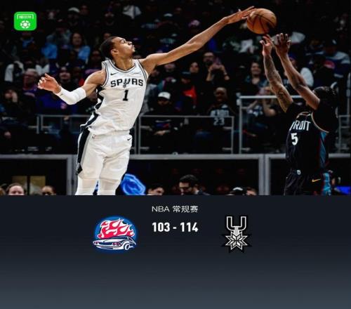 第四節活塞杰倫-杜倫拿下14分,馬刺文班亞馬拿下11分,最終活塞103-114不敵馬刺