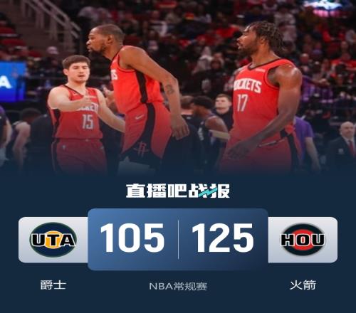 首節火箭在和爵士短暫拉鋸后迅速接管比賽,他們攻防兩端完全壓制對手并在后半段轟出一波27-11的攻勢直接拉開兩位數領先;大優局面之下火箭完全控制局勢,次節他們依舊穩定輸出勢不可擋,整個上半場火箭各項數據超出平均水準,半場45投29中命中率超六成,同時半場送出22次助攻也讓14次失誤變得沒有那么難看;反觀爵士半場僅30%出頭的命中率,三分球更是22投3中導致半場便落后21分之多。休息歸來火箭又是一波21-11的攻勢繼續拉大領先,不過這之后的爵士狀態有所回暖并止住頹勢蠶食比分,奈何分差太大對整體局勢沒有太大影響。最終,火箭主場輕取爵士拿下比賽。