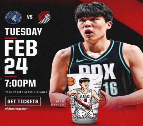 北京時間2月25日,根據開拓者官方報道,開拓者將在本日主場對陣森林狼的比賽,舉辦楊瀚森之夜給前5000名到場觀眾送紀念玻璃杯,但楊瀚森本人卻已經被下放到發展聯盟,但因為身體不適缺席比賽無緣征戰,無疑是令人看不懂的操作。
