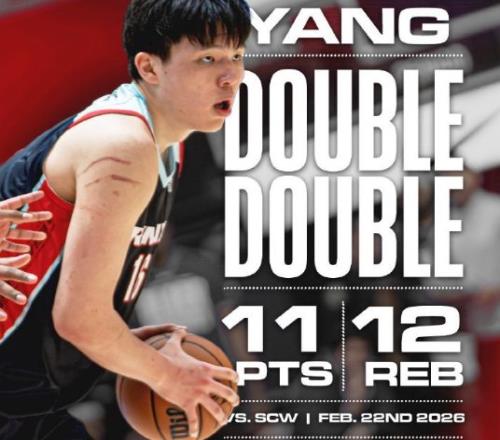 只是楊瀚森上一場開始被下放到發展聯盟,他在上一場比賽貢獻11分12籃板的兩雙數據。