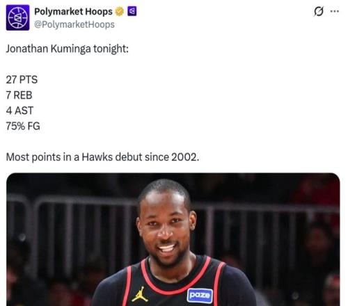 受困于傷病問題,此前庫明加一直沒有出戰,本場是其交易加盟老鷹后的首秀,結果這名此前一直被外界嫌棄球商不足的年輕鋒線卻打出驚艷表現強勢回擊。