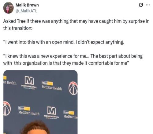 雖然本場比賽特雷楊因為膝傷無法出戰,但依舊成為媒體關注的焦點,賽前也談及對于這筆交易的看法。