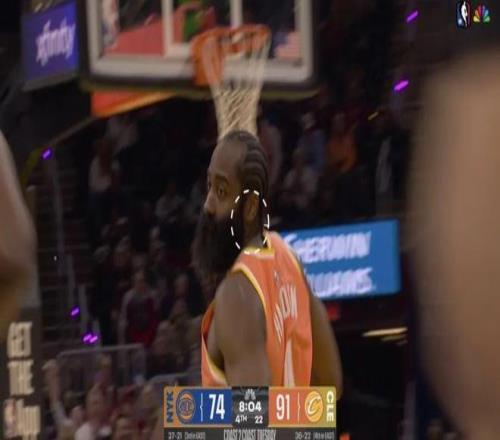 大概,米球被尼克斯層疊包裹負重前行,哈登在三分線外不動心不入局不糾纏,罕見的0罰球——哈登!0罰球!——遠射、梳理球,“施羅德你從這個角度攪和”,把泥淖戰打成清掃戰。