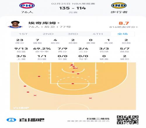 【菜鳥】埃奇庫姆23分7板4助2斷克尼佩爾歷史最快200三分