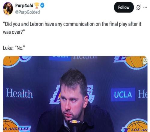 最后被問及賽后是否有和詹姆斯溝通時,東契奇明確表示:“沒有。”