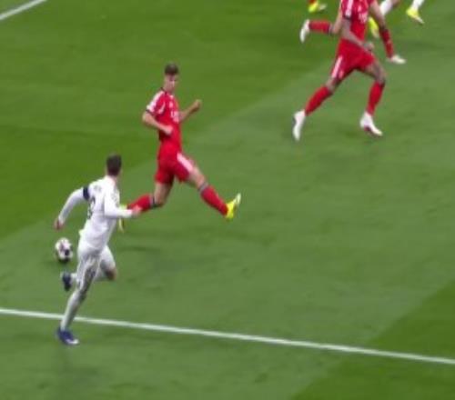 第68分鐘,帕夫利季斯禁區(qū)前抽射,皮球被擋出底線;與此同時(shí),呂迪格胸口被卡雷拉斯的膝蓋沖撞↓