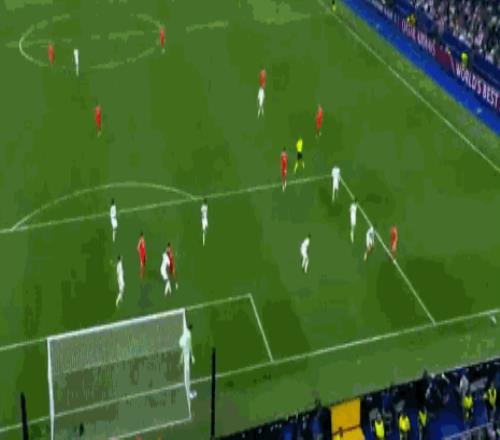 第38分鐘,里奧斯勁射,庫爾圖瓦做出精彩撲救