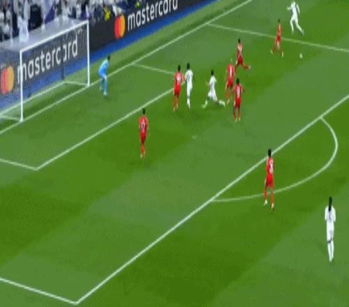 第16分鐘,居萊爾做球,巴爾韋德右路倒三角傳中,楚阿梅尼迎球勁射,特魯賓撲了一下依舊入網(wǎng),皇馬迅速扳平比分,1-1!