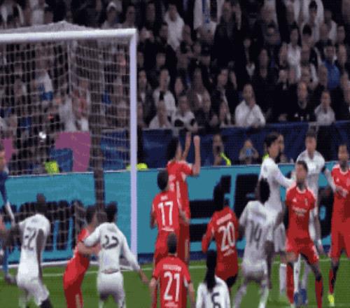 第53分鐘,皇馬獲得前場任意球,阿諾德傳中,阿森西奧的頭球稍稍高出。