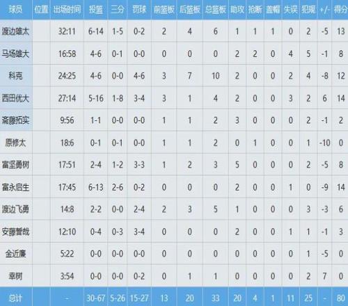 日本男籃數據如下: