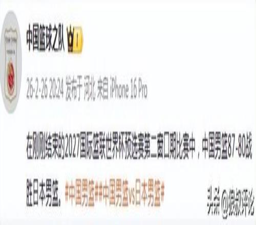 2月26日晚上的比賽,中國男籃在客場以87-80艱難的戰(zhàn)勝日本男籃,這場比賽中國隊不僅完成了落后15分的大逆轉(zhuǎn),還狠...