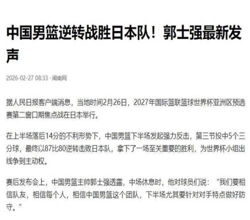 此次戰勝日本隊,不僅挽回了中國男籃的風評,也讓郭士強的風評得到扭轉。
